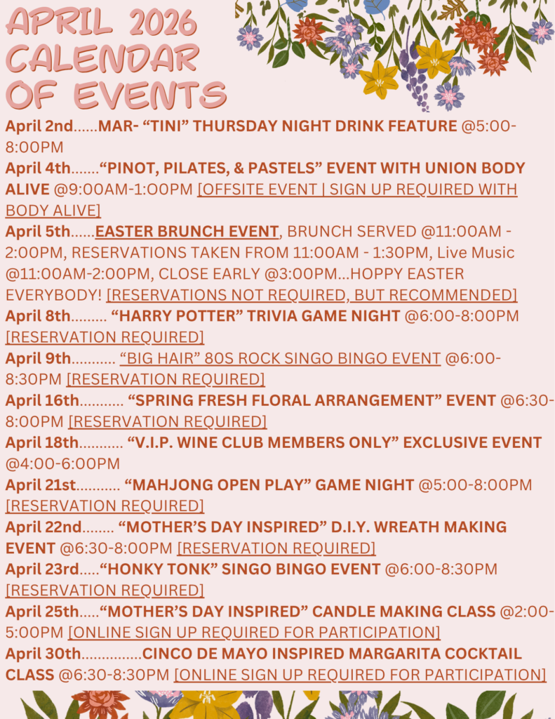 Join us for our Cinco De Mayo Inspired ALL MARGARITAS Cocktail Class from 6:30-8:30PM! We’ve been known in the area for having the best Margaritas in town, learn how to […]