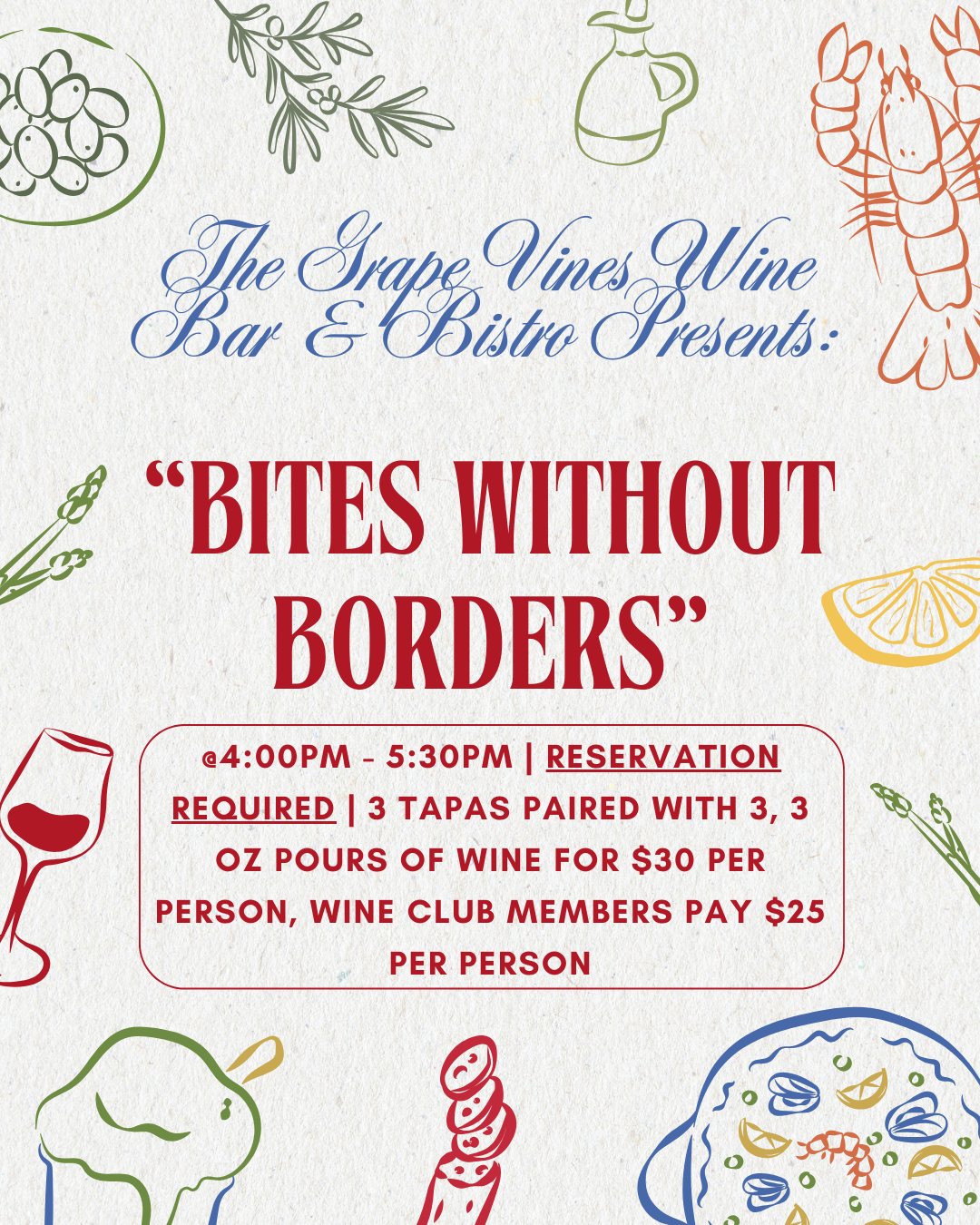 T.G.I.F.! WE MADE IT TO THE WEEKEND! Dinner with the Grape Vines Bistro will be available for purchase from 6-8pm...stay tuned on the Menu for the evening! Come Check out […] |